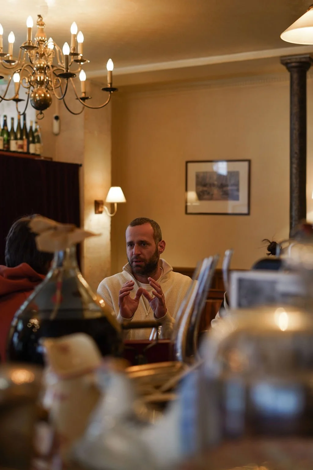 In 2024, the dream becomes reality and he takes over the place and named it L’Auberge des Crus. The décor wasn’t exactly what he imagined, but finding a working fireplace in Paris — especially in a restaurant — is almost impossible. So he compromised. A few changes in the space and voilà… doors open.